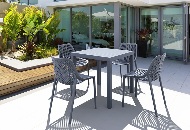 På grund av enkelheten och sina rena linjer kan Ares 80 bordet integreras i nästintill alla olika miljöer. Bordet passar både till den privata uteplatsen såväl som till upphandling, restaurang och café. Ares 80 bordet är tillverkat av Polypropen som har förstärkts med glasfiber. Bordet är designad för att motstå väderpåverkan och har avtagbara ben vilket gör det smidigt att transportera och förvara.