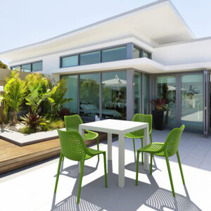 Helen klappstol er laget i ett stykke polypropylen forsterket med glassfiber, ved hjelp av den nyeste generasjonen luftstøpingsteknologi i nøytrale toner. Egnet for både innendørs og utendørs bruk.