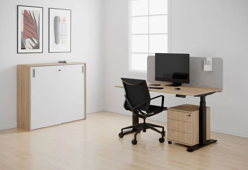 Skap med skyvedører er et naturlig element på kontoret og i det åpne kontorlandskapet. Skjul ladere og lapp-lapper, dokumenter og private gjenstander slik at skrivebordet holder seg rent og ryddig. Det er smarte alternativer for dokumenthåndtering slik at strukturen blir enda bedre.