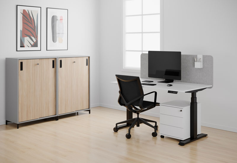 Skap med skyvedører er et naturlig element på kontoret og i det åpne kontorlandskapet. Skjul ladere og lapp-lapper, dokumenter og private gjenstander slik at skrivebordet holder seg rent og ryddig. Det er smarte alternativer for dokumenthåndtering slik at strukturen blir enda bedre.