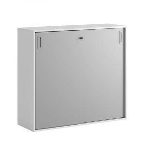 Hvitt skap med grå skyvedører 80x40x72 cm i Modify-serien er designet for kunder som ønsker mange valg. Skapet har to permer i høyden. Lås med 2 nøkler inkludert.