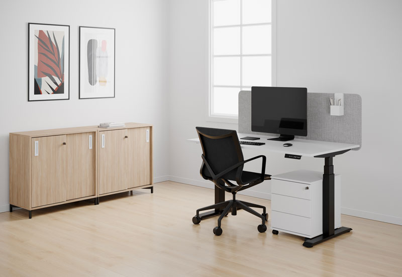Skap med skyvedører er et naturlig element på kontoret og i det åpne kontorlandskapet. Skjul ladere og lapp-lapper, dokumenter og private gjenstander slik at skrivebordet holder seg rent og ryddig. Det er smarte alternativer for dokumenthåndtering slik at strukturen blir enda bedre.