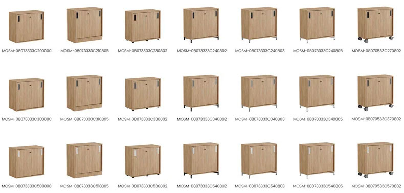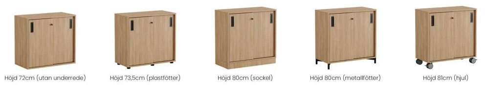 Skap med skyvedører i Modify-serien er designet for kunder som ønsker mange valg. Vi tilbyr 4 forskjellige størrelser på skap med skyvedører med 5 forskjellige valg av chassis: ramme uten chassis, sokkel, plastføtter, stålben eller hjul. De forskjellige valgene av chassis er tilgjengelig i forskjellige farger. Velg også fargen på håndtaket for å lage en rekke alternativer.