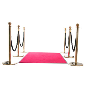 Settet inneholder 6 stolper, 25 meter rød/hvit plastkjetting og plastbeholdere som du fyller med sand eller vann for å skape stabilitet.