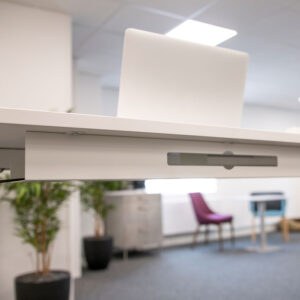 Stativet har et stilrent design som gjør at skrivebordet passer inn i alle typer kontorlokaler. Skrivebordsstativet har rektangulære ben som er pulverlakkert i hvit, svart eller sølvgrå farge. Stativet har en rec. maks. belastning på 100 kg, noe som er mer enn nok for de fleste. Seksjonen har vanligvis 2-3 skjermer, dockingstasjon, dokumenter osv.