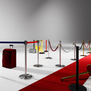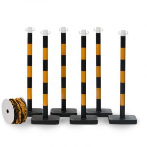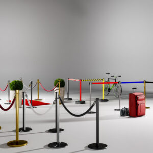 Vi tar avsperring på alvor! Vi har et bredt produktsortiment med raske leveranser av komplette avsperringssett, knestolper med tau eller stropper, veggkassetter og veggbraketter osv. Vi har også transportvogner til våre knestøtter for å forenkle transporten.