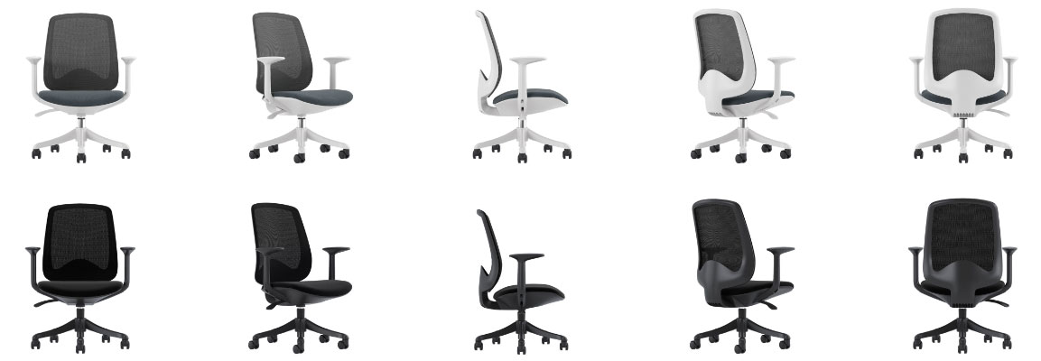 - Stolsrygg i mörgrå eller svart mesh